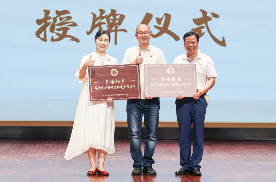 活动现场,越秀区文化广电旅游体育局授予越秀区少年宫“粤语相声”和“粤语讲古”两项越秀区非物质文化遗产传习所牌匾。此次授牌,是越秀区少年宫持续推进广府文化非遗传承的成果之一。